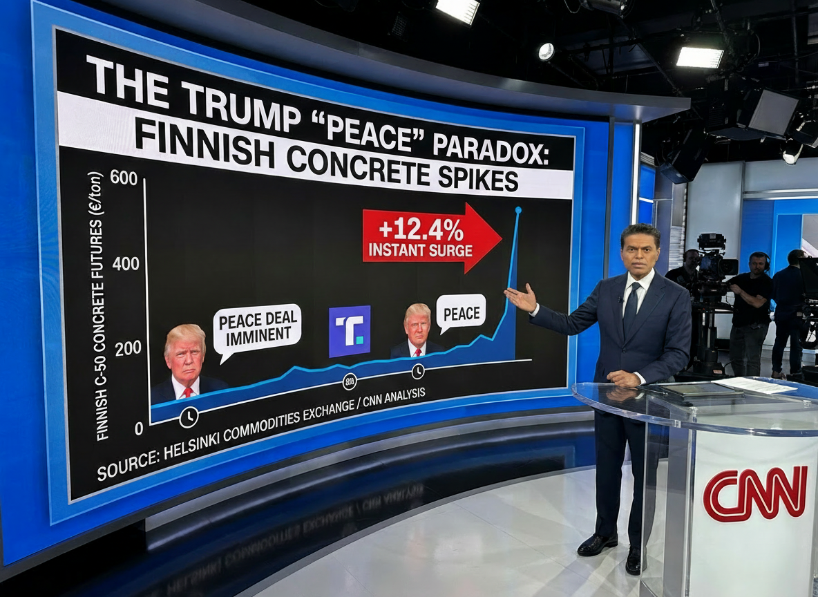Prema izvješću pod nazivom “Retorika kao tržišni potres”, svaki put kad Donald Trump na tiskovnoj konferenciji ili društvenoj mreži Truth Social upotrijebi sintagmu “brzi mir”, “prekrasan dogovor” ili “jako se dobro slažem s Vladimirom”, terminske cijene (futures) betona klase C-50 na Helsinškoj burzi trenutno skaču za prosječno 12,4 posto.